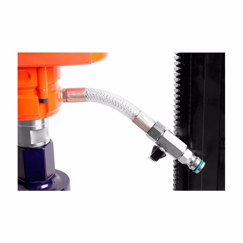 - Чистота процесса: встроенная система подключения воды для охлаждения алмазной коронки подавляет образование пыли, что соответствует современным требованиям к экологии и безопасности труда.